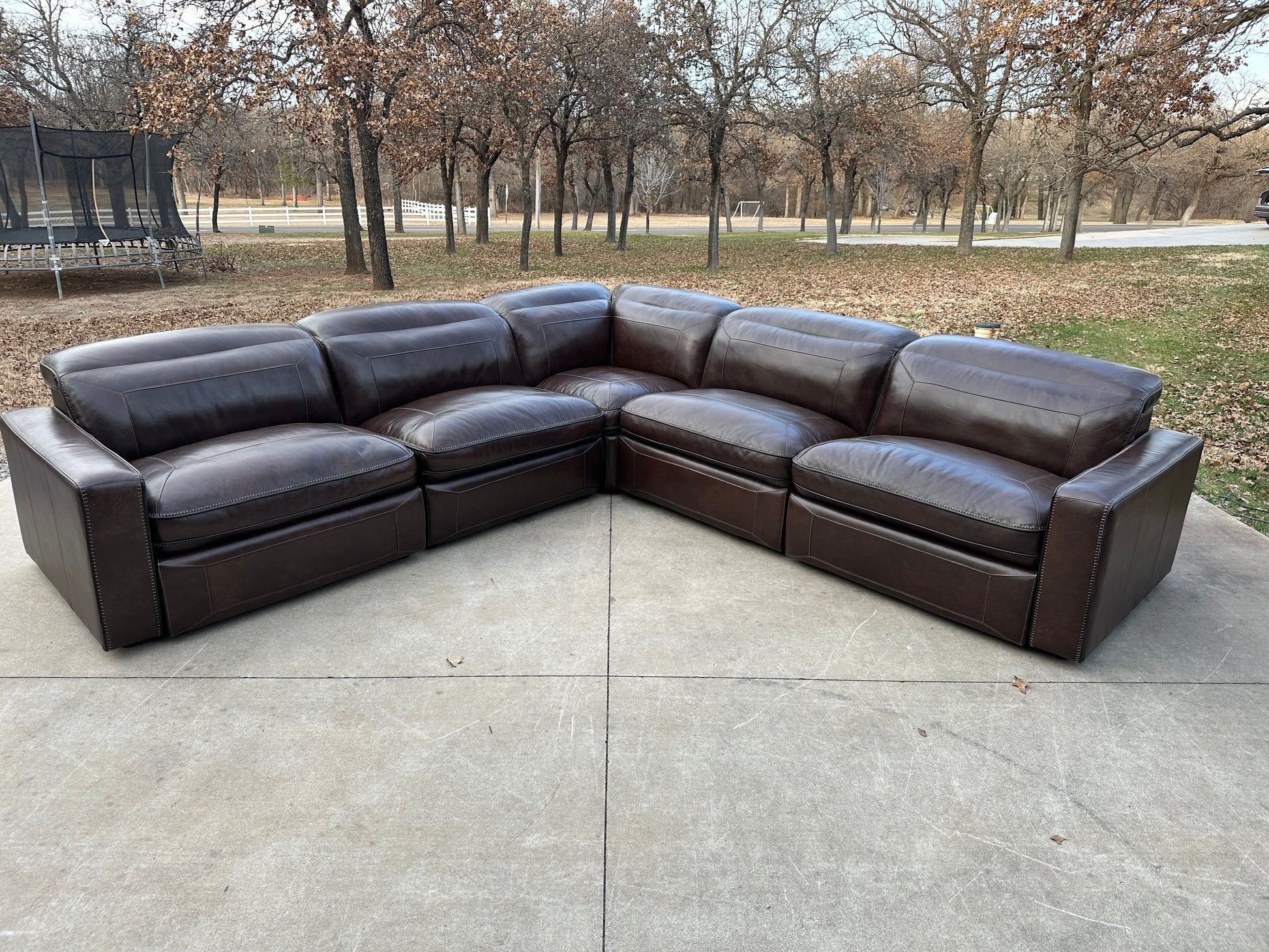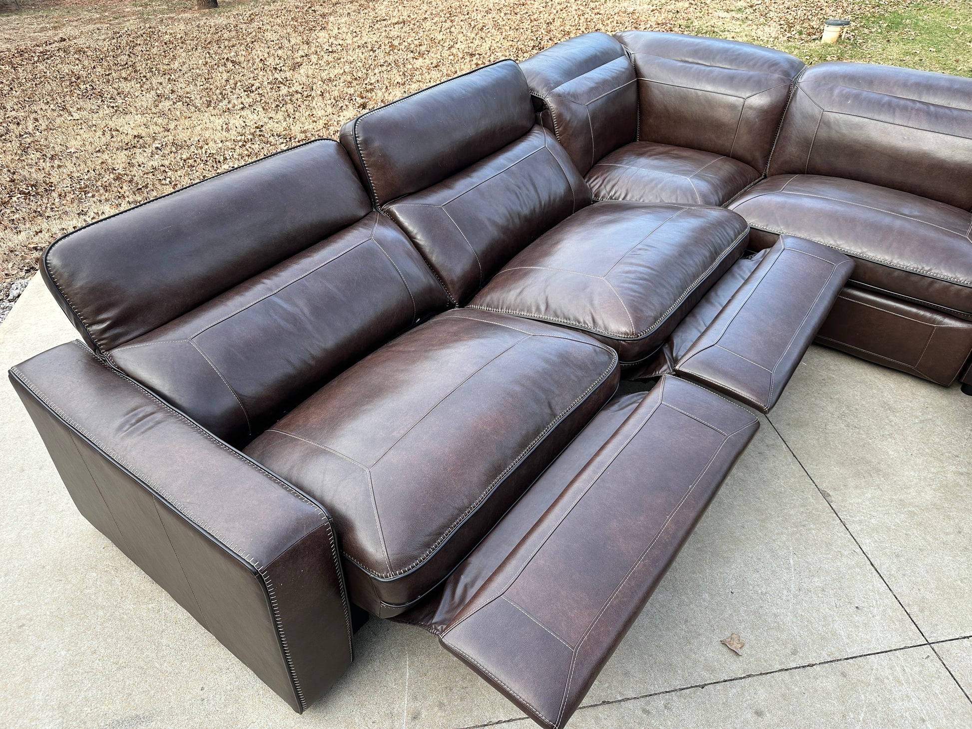 Bernhardt 100% Genuine Brown Leather Power Reclining Sectional - $2200 cash price